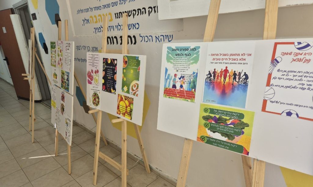 את מסדרונות בית הספר עיטרו כרזות בריאות ומיצג תזונה נבונה שהוכנו על ידי תלמידי המסלול בשיעורי תזונה – תוצר לימודי שהפך לחלק בלתי נפרד מהאווירה החינוכית של היום.